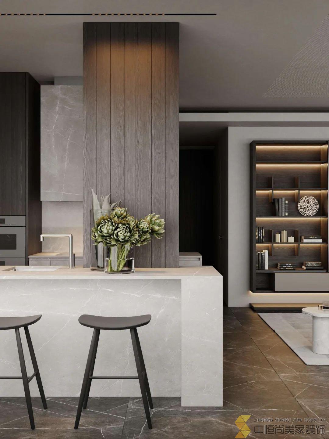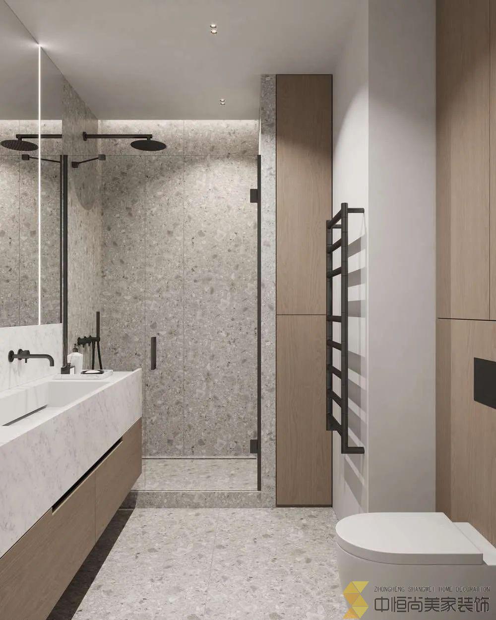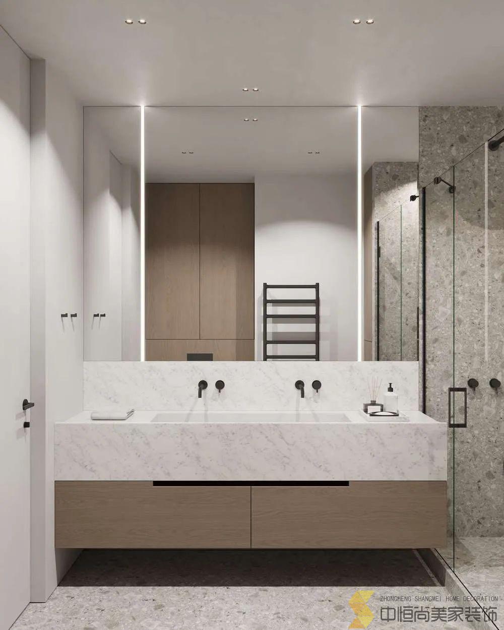 • 运用了大理石和木材装饰店空间,浅色调的色彩方案与深色的地板,搭配出质感,卫生间配有木色,白色,以及水磨石背景墙加上了线性灯元素让小小的卫生间显得更温馨,卧室采用灰白色为主,有一个步入室的衣柜,厨房使用的木色和黑色搭配,对与喜欢洁净,安静的人,无疑最好的选择